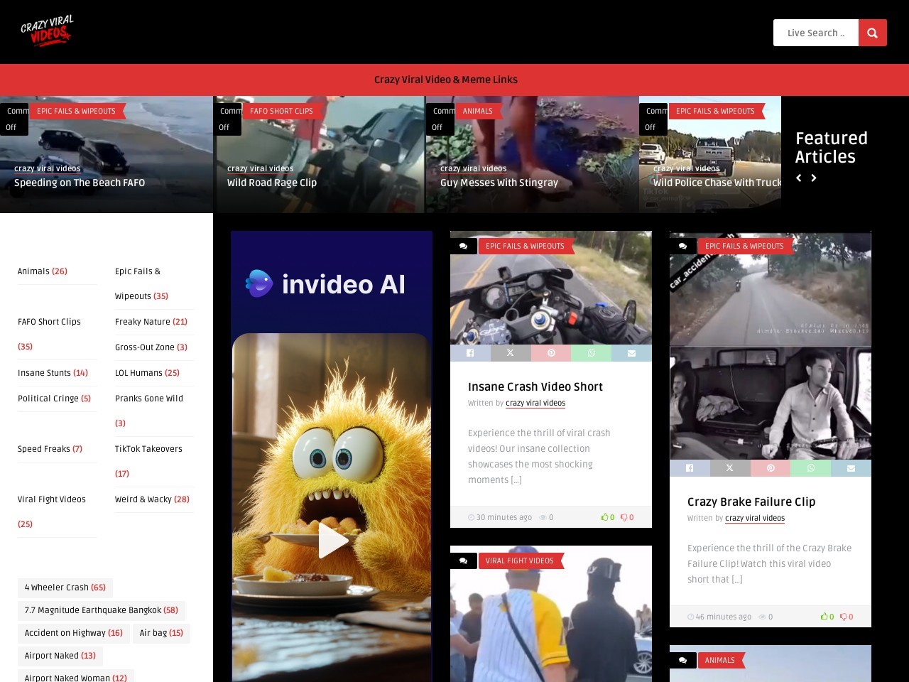 Yo, you giggle-hungry mischief-maker, buckle up for the wild, laugh-out-loud frenzy of Crazyviralvideos.com. This is where crazy viral video clips steals the show! This website is your golden ticket to a hilarious stash of crazy viral clips, internet prank videos, and gut-busting content. That you can bet will leave you cackling louder than a meme-worthy goat yell. From epic fails to quirky pet antics and savage internet roasts, the site serves up a nonstop parade of comedy gold. Unlike tired TV reruns or outdated joke sites, Crazyviralvideos.com delivers fresh, user-shared hilarity. Also, keeping you glued to the screen with laughter anytime, anywhere. The charm of Crazyviralvideos.com lies in its chaotic, community-fueled vibe. Packed with viral internet gags, hilarious prank videos, and absurd social media moments. This is a playground for anyone craving a quick chuckle or a deep dive into comedy chaos. Whether it’s a TikTok dance fail, a classic hidden-camera prank, or a video of a cat stealing a pizza slice. Also, the site’s slick navigation lets you hop between categories like epic fail videos, silly meme clips, and viral comedy trends with ease. Mobile-friendly and constantly refreshed, it ensures you’re always in on the latest internet humor, making it a haven for comedy lovers and casual laugh-seekers. Crazyviralvideos.com is a great place where viral video comedy and crazy internet laughs collide to spark pure joy. With content spanning goofy animal shenanigans, relatable life fails, and witty online roasts, there’s something for every humor fan. The site’s ever-expanding collection of hilarious clips keeps the laughs rolling, outshining stale humor platforms with its dynamic, user-driven approach. Dive into Crazyviralvideos.com, explore the world of viral prank videos and comedy chaos. Furthermore, you can let the internet’s wildest moments fuel your next belly-laughing adventure!